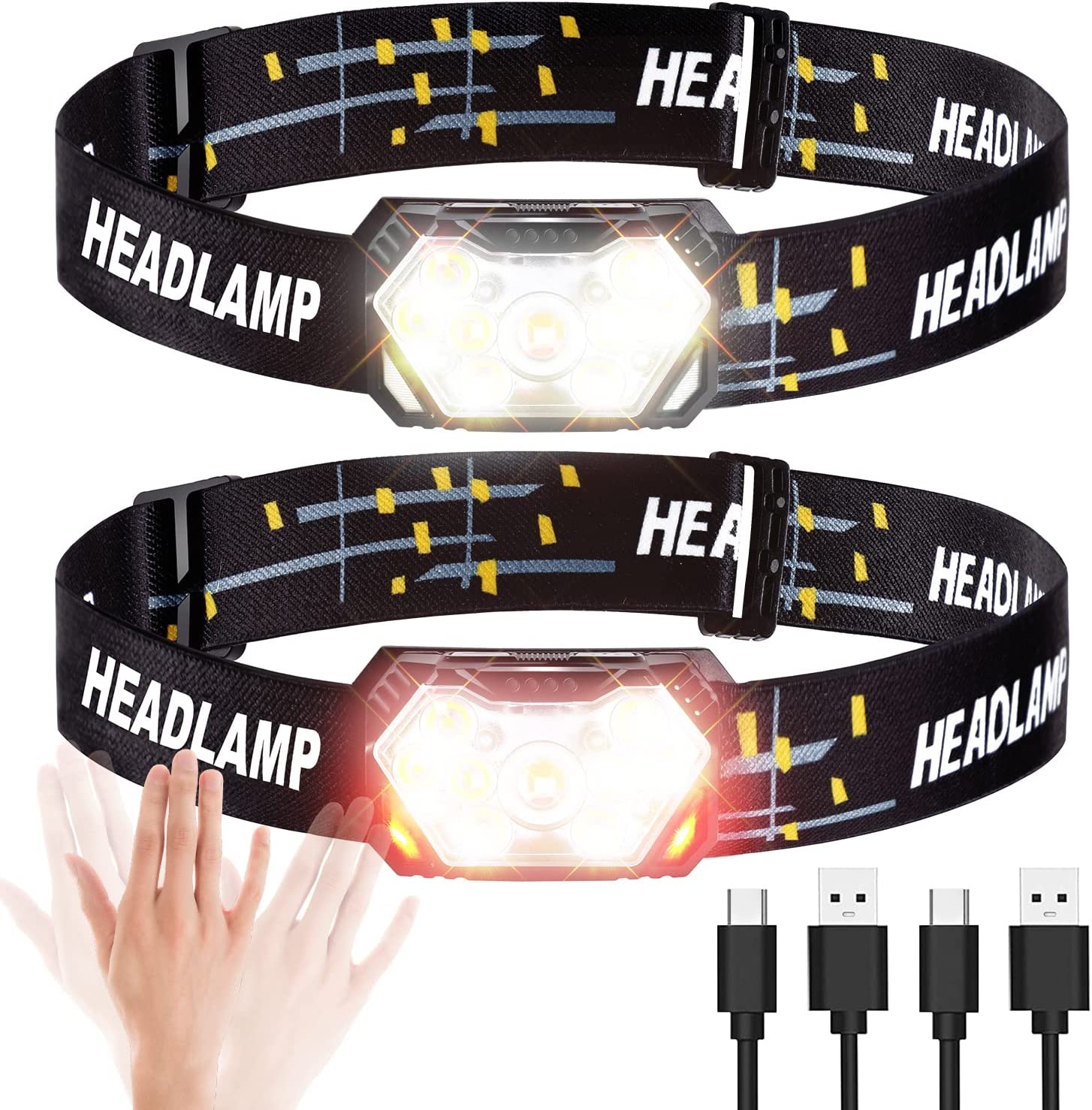 - 【6 Modes & Motion Sensor】 The head lights has up to 6 different ways of lighting up. Different brightness can be adapted to different needs of use. You can easily switch between different light-up modes with the switch. More energy-saving and environmentally friendly. Or you can use the sensor mode, the sensor button to switch the mode at the same time you can wave your hand on the right side of the headlamp to turn headlights on and off.
