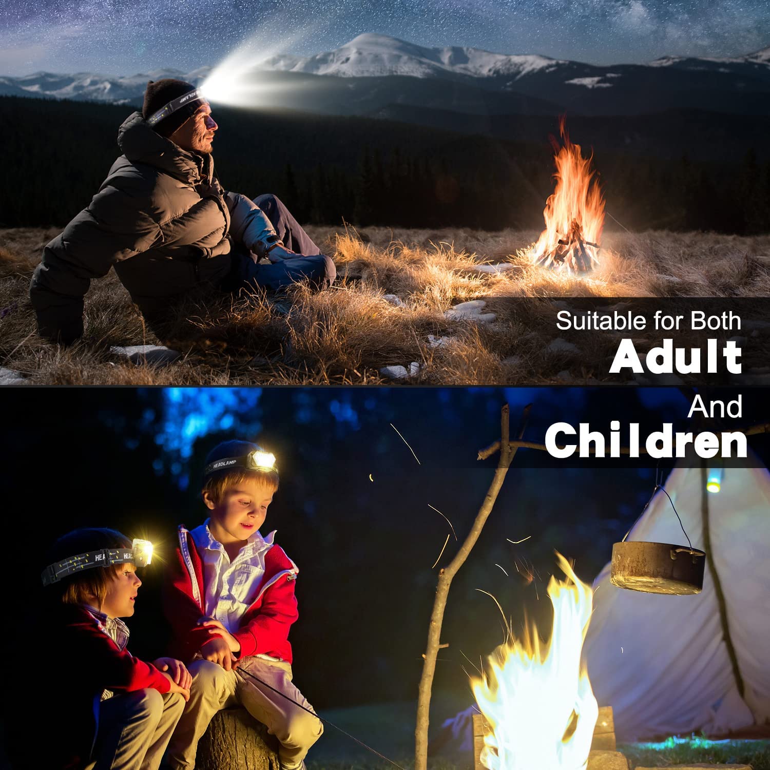 - 【Lightweight & Comfortable】 The head lights for forehead uses a lightweight design, weighing only 2.3 oz. It is easy to wear on the head without discomfort. The light can be adjusted 45° to adapt to different lighting needs. The headband also uses elastic material and can adjust the length to easily adapt to different head shapes of adults and children.